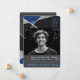 A modern and trendy, gender neutral graduation announcement card design featuring artistic geometric colour blocks in navy blue and greys with a single photo in a bold typographic layout.
