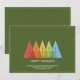 Simple modern Christmas Holiday card featuring a row of colour overlapping Christmas tree graphics. Minimalist typography. Clean simple design. All text areas personalizable. Contact for assistance in personalizing or customizing to your individual wishes. Happy holidays!