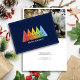 Simple modern folded Christmas Holiday card featuring a row of colour overlapping Christmas tree graphics and family photo. Minimalist typography. Clean simple design. All text areas personalizable. Contact for assistance in personalizing or customizing to your individual wishes. Happy holidays!