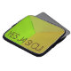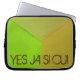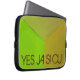 Y-shaped geometric design where lines split the square into three areas. Each area with a slightly different colour, all in green to yellow tones. The colour scheme stands out as fresh, a touch of cubism, somehow etnic, a tad psychedelic, and unique. Text «YES JA SI OUI» is a positive message in some of the world's bigger languages. Default text can easily be customized.
