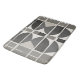 This geometric design features a stylish combination of curves and grid-like sections in shades of grey, white, and black.