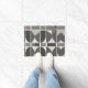 This geometric design features a stylish combination of curves and grid-like sections in shades of grey, white, and black.