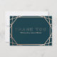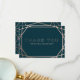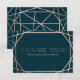 A modern and contemporary winter wedding "Thank you" card, features a "faux foil" gold rose geometric pattern over a dark turquoise background. All your details are spelled in a beautiful modern typo.