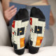 Elevate your wardrobe with these modern geometric floral socks. Featuring a sophisticated beige backdrop with bold red, black, and yellow accents and delicate floral details, these socks are a perfect blend of contemporary style and timeless charm. Add your name or text for a personalized gift that stands out. Designed for comfort and durability, these socks are ideal for anyone who loves unique and artistic accessories.