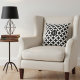 A throw pillow with a modern black and white floral pattern to embellish with a monogram.