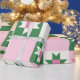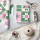 Stylish geometric wrapping paper featuring a repeating patchwork pattern in soft pink, green, and cream tones. The symmetrical ribbon-inspired shapes create a modern yet playful look, perfect for birthdays, weddings, baby showers, holidays, and special celebrations. Ideal for gift wrapping, craft projects, and decorative packaging.