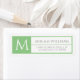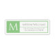 Elegant modern geometric green tones frame with a customizable monogram on reversible white background, address label design.