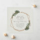 Modern boho wedding postponement announcement card with the title, "Delay the Date" and your message inside of a gold geometric frame surrounded by greenery and white flowers. A botanical design that is great for letting your guests know that your wedding has been postponed. Frame courtesy of: <a href="http://www.freepik.com">Designed by Freepik</a>