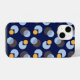 This stylish phone cover features an elegant geometric pattern with overlapping circular shapes in soothing blue tones, accented with vibrant yellow dots. The dark navy background enhances the contrast, giving it a sleek and sophisticated look. Perfect for those who love minimalistic yet artistic designs, this cover adds a contemporary touch to your device.