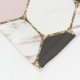 This pretty geometric pattern is made out of marble hexagons in rose pink, gold, black, and white. It adds a feminine, sophisticated touch to your home décor.