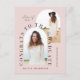 Geometric modern typography elegant pastel natural 2 photo arch graduation announcement card. pink