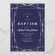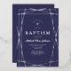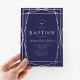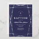 Modern Geometric Navy Blue Boy Baptism Silver Foil Invitation.