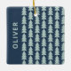 Modern geometric navy blue Christmas tree graphic Ceramic Ornament