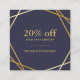 Modern Chic Minimalist Trendy Gold Geometric Pattern Midnight Blue Social Media Square Discount Coupon Card Template is easy to customize! Editable & Customizable! Perfect for many visual creative edge professions looking Ideal for Event Planner, Wedding Planner, Consultant, Stylists, Designers, MakeUp Artists, Salon and Creative Professionals. Also suitable for other professions Designers,, Interior Decorator, Cost Estimator, Project Manager, Public Relations Consultant, School Counsellor Occupational Therapist, Dentist, Pharmacist, Psychologists, Psychiatrist, Accountant, Tax professional, Financial Adviser, Real Estate Agent, Attorney, Lawyer, Solicitor, Paralegal, Clothes Shop Owner, Legal Professional, Software / Web Developer, Programmer, Chiropractor, Computer Analyst, Database Administrator, Cleaner, Veterinarian, Interpreter & Translator, Sales Representative, Social Worker and many other professionals. (Gold NOT foil, an image)
