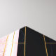A geometric, modern artwork, elegant blush, pink shining faux glitter sparkles, blending with a simple, plain vanilla ice colour, pale blush pink gradient, and geometric gold strokes, lines, stripes squares and triangles, with a black navy-blue marble stone image and on and white and pink triangle colour block background. This Art deco inspired image print, with a girly feel, chic design, original art looks great for everyday wear, or decorations.