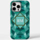 This iPhone case features a chic, modern and elegant designs geometric triangular, colourful polygon pattern, teal turquoise and emerald green abstract illusion pattern with personalised initials Monogram. Perfect for any occasional and holiday season gift ideas for your family and friends who likes polygon pattern. you can change the monogram initials by customisation tools.
