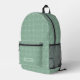 Chic and Stylish, this Modern Green Printed Backpack features a hand-drawn pattern of bright green and sage green lines arranged in a whimsical and unique geometric pattern. Easily customize the name for a personalized touch.