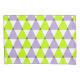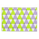Trendy geometric pattern with purple, lime green and white triangles.