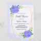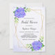 These bridal shower invitations feature a watercolor floral design with purple hydrangea flowers, leaves and a faux gold geometric frame. Matching bridal shower supplies also available.