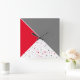 Modern Geometric Red Grey Terrazzo Pattern Square Wall Clock