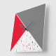 This square wall clock features a modern red and grey geometric design with a trendy terrazzo pattern in matching shades. Customize the colours by clicking on Edit design.