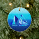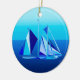 Modern Geometric Sailboat / Yacht, Cobalt Blue Ceramic Ornament