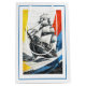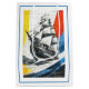 A striking illustration of a classic sailing ship cutting through dynamic waves, rendered in a modern geometric style. The artwork blends precise technical linework with bold blocks of yellow, red, and blue, creating a fusion of vintage maritime charm and contemporary abstract design. Crisp sails and detailed rigging contrast beautifully with sweeping curves and graphic shapes, evoking motion, adventure, and exploration. Perfect for ocean lovers and nautical enthusiasts.