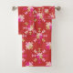 Modern Geometric Shapes Pattern in Bright Red Bath Towel Set