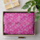 Tissue paper in a modern geometric snowflake pattern - shades of pale ice pink and orchid, accented with white, on a deep fuchsia pink background