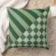 Modern Geometric Stripe & Chequered Forest-Green Throw Pillow