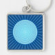 Modern Geometric Sunburst - Cobalt Blue and Aqua Keychain