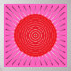 Mid-Century Modern abstract sunburst with a silky, gradient effect - deep Chinese red on a fuchsia pink background, accented with silver