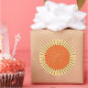Mid-Century Modern abstract sunburst with a silky, gradient effect - deep mandarin orange on a pastel orange background, accented with black