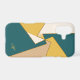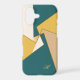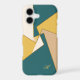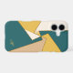 A sleek and artistic case featuring intersecting geometric shapes in teal, mustard, beige, and cream, outlined with elegant gold lines and a refined monogram, a perfect mix of modern and luxurious style.