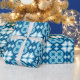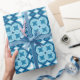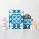 Wrapping paper in a four-way, Mid-Century Modern, Geometric tile pattern in shades of light to dark denim blue and white