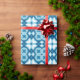Modern Geometric Tile Pattern Denim Blue & White Wrapping Paper