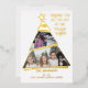A truly unique photo Christmas Card with your photo collage in a stylish tilted asymmetrical tree with a star topper. Unique and creative but still in keeping with tradition. It is a modern, clean, fun design that highlights your photos outlined in real foil in gold, silver, or rose gold that pop on the deep green background Add two of your photos within the tree shape. The top of the tree commemorates the year. The base of the tree offers three lines of personalization space for family names and parent, children and pet names. The main message is "Wishing You All the Joy of the Holiday Season" but you can customize this. There is also space on the reverse side for additional handwritten notes if you wish to add some. Jubilant and elegant, this card is a classic photo card with distinctive design and just the right touch of metallic accents.