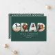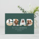 Geometric modern typography elegant natural green multi photo graduation announcement card.