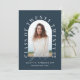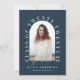 Geometric modern typography elegant navy blue photo arch graduation announcement card.