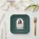 Geometric modern typography elegant green photo arch graduation announcement card.