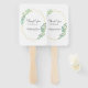 These fans were exactly as pictured. The quality is great. Perfect favor for a wedding!...I will make assembly a little easier by using a hot glue gun and finish them off with a ribbon. Beautifully printed. Crisp and clear text.