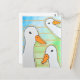 This postcard features a watercolor painting showcasing three white ducks against a blue-green background with geometric gold lines. See more modern animal gifts in our store, as well as more duck presents for animal lovers.
