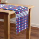 Modern Geometric White Red Diamond Stripe Pattern Short Table Runner. White Red Diamond Stripe Pattern on Blue Background.