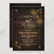 Rustic woodgrain 60th birthday dinner party invitation with a unique geometric gold frame.