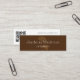 Modern skinny mini business card features gold gingko leaf illustration on dark brown background with white contemporary text on front, and grey text with customizable QR code on back.