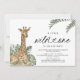 A beautifully rendered watercolor image of a giraffe graces the left side of the invitation, adding a playful and enchanting touch. The modern script text is stylish and easy to read, adding a touch of sophistication to the design.