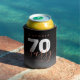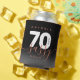 Celebrate the big seven oh in style with this modern design, which features striking black, white, and copper block and handwritten lettering set on a rich black to smoky grey background. Reverse shows identical design.