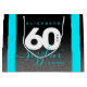 Celebrate the big six oh with this stylish modern design, which features striking black, white, and ice blue block and handwritten lettering set on a rich black to smoky grey background. Reverse shows identical design.