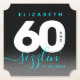 Celebrate the big six oh with this stylish modern design, which features striking black, white, and ice blue block and handwritten lettering set on a rich black to smoky grey background.