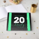 Celebrate the big two oh with this stylish modern design, which features striking block and handwritten lettering set on a rich black to smoky grey background and mint green borders.